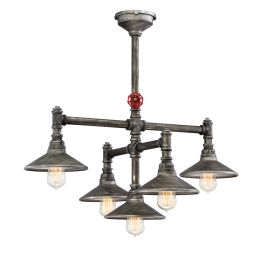 Eurofase 30030-015 Zinco Vintage Industrial Water Piping Round Chandeliers, 5-Light 300 Total Watts, 21"H x 30"Dia, Aged Silver