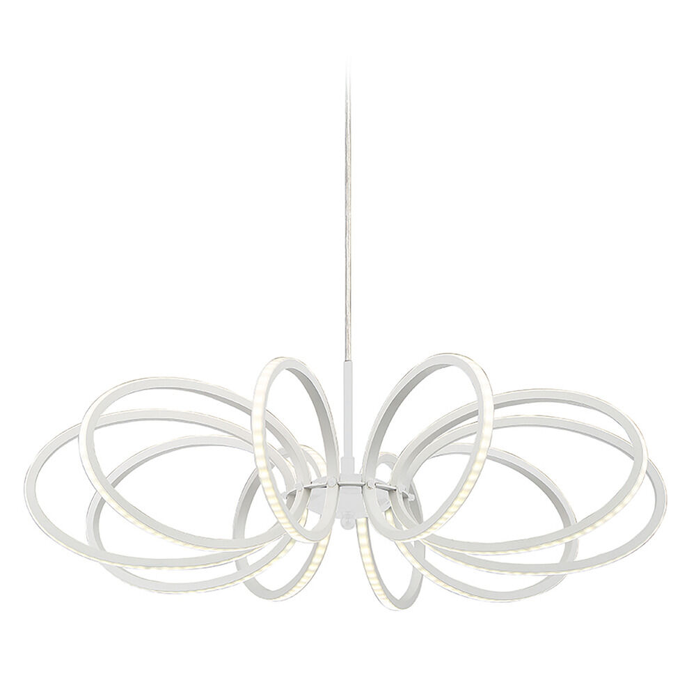Eurofase Tela Curved Face 10 Rings Pendant, White Aluminum Finish, Integrated LED Lights, 25 Inches in Diameter-Model 30039-025