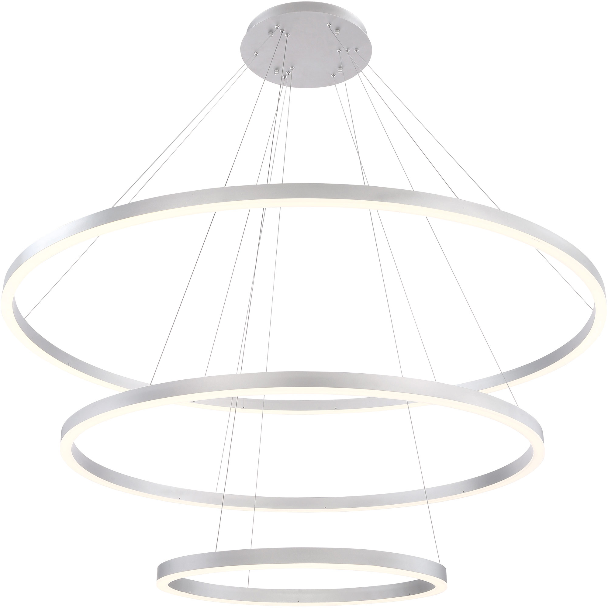 Eurofase 31474-016 60.75" Diameter Spunto Oversized LED 3-Tier Ring Chandelier with Opal Diffused Shade, X-Large, Aluminum Finish