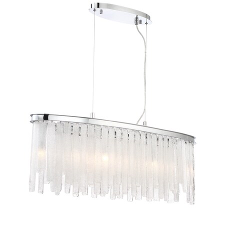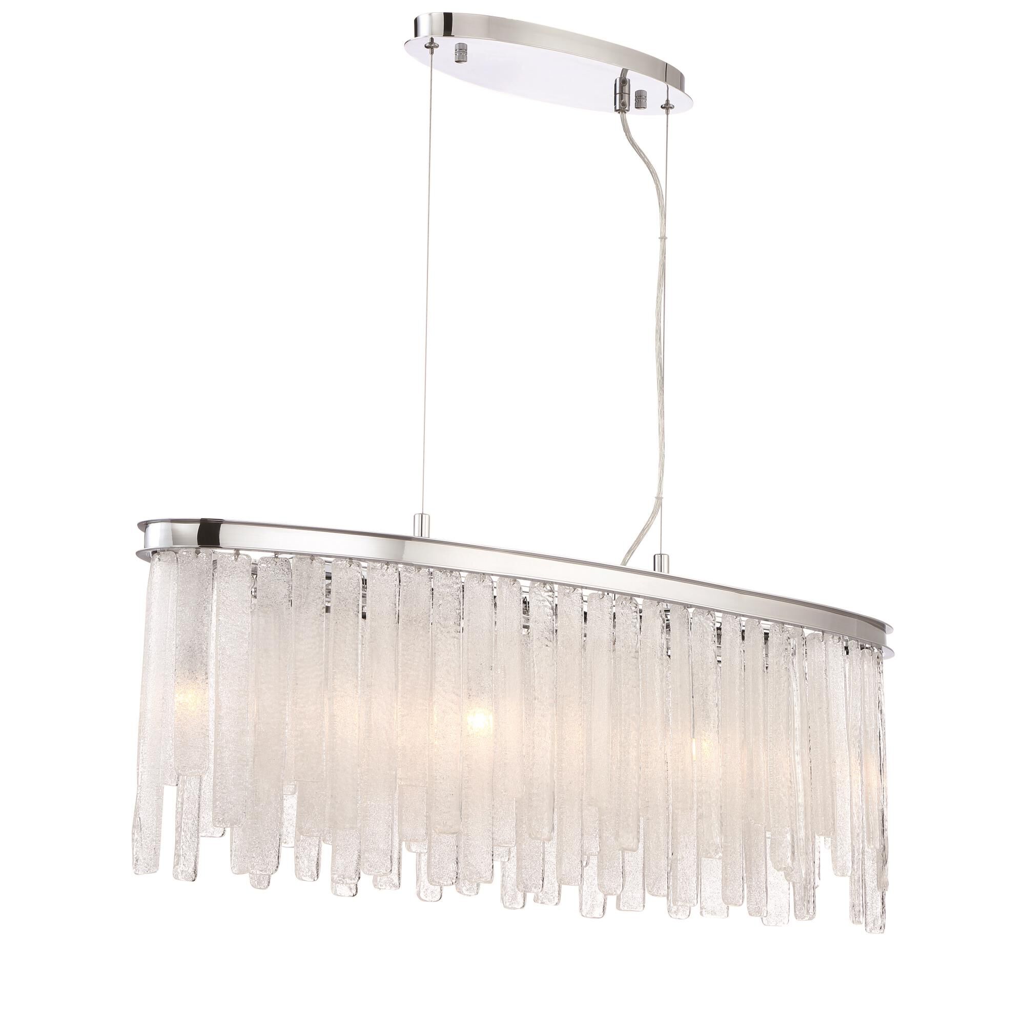 Eurofase 31607-018 Candice Panels Of Handmade Frosted Granular Glass Oval Island Chandelier Light, 9-Light 360 Total Watts, 12"H x 10"W x 36"L, Chrome