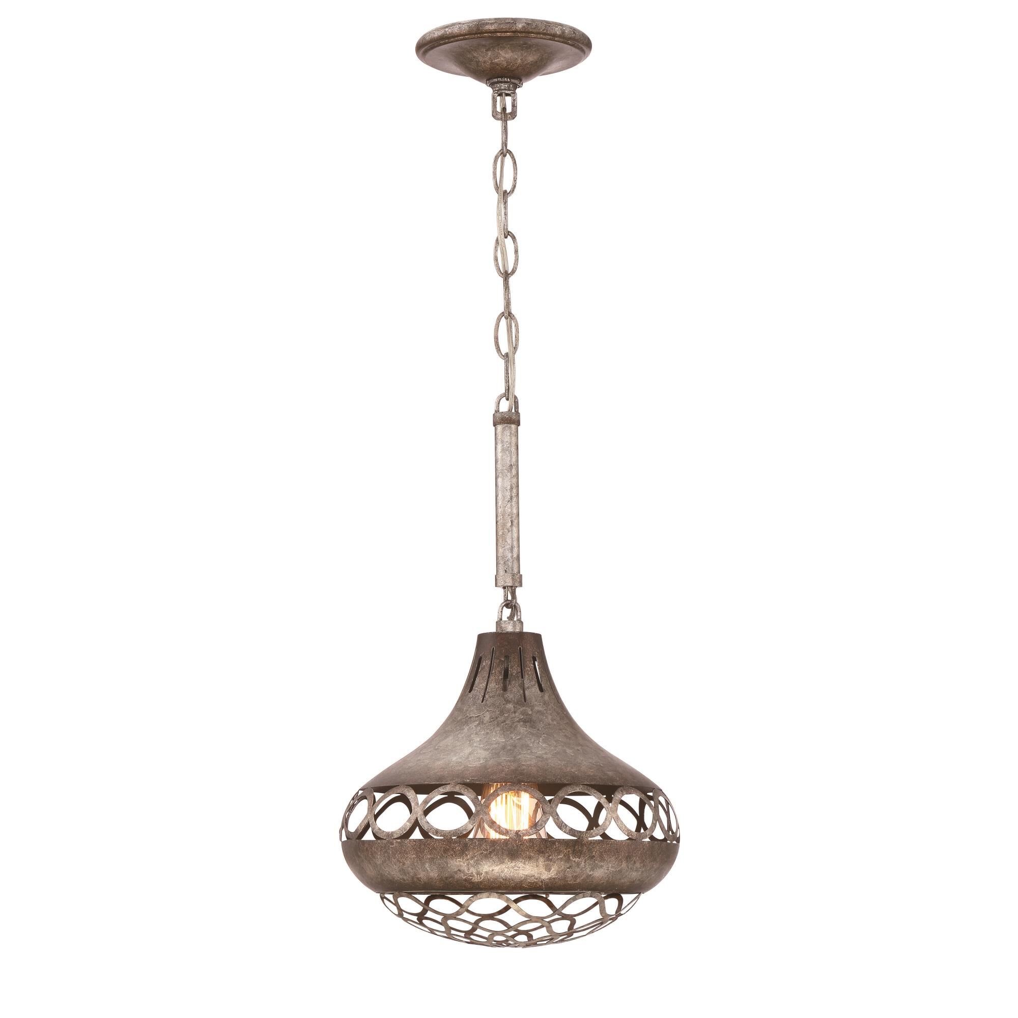 Eurofase 31632-027 Mosto Rustic Antique Laser Cut Metal Pendant Light, 1-Light 60 Watt, 16"H x 10"Dia, Antique Silver