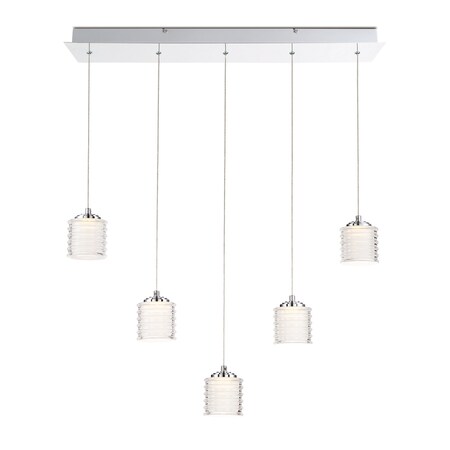 Eurofase 31787-017 Ancona Clear Ribbed Acrylic Linear LED Pendant Light, 5-Light 27.5 Total Watts, 5"H x 6"W x 28"L, Chrome