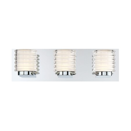 Eurofase 31790-017 Ancona Clear Ribbed Acrylic LED Bath Vanity Wall Mount, 3-Light 30 Total Watts, 5"H x 17"W, Chrome