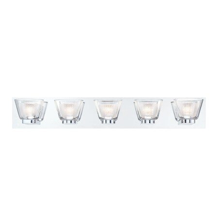 Eurofase 31803-014 Trent Double Glass 5 LED BATHBAR, Frosted & Clear Glass Shade, Chrome Finish, 31.5 inch Wide - Model 31803-014Chrome