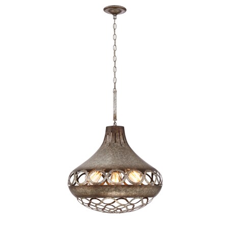 Eurofase 31848-015 Mosto Rustic Antique Laser Cut Metal Pendant Light, 5-Light 300 Total Watts, 33"H x 24"Dia, Antique Silver