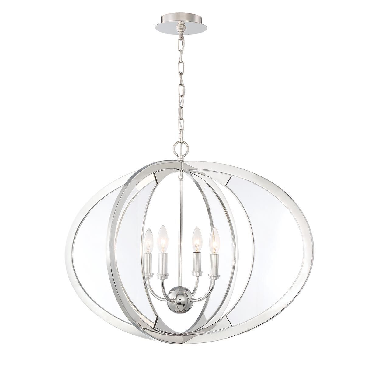 Eurofase 33707-013 Amherst Metal Bands Classic Candle Pendant Light, 4-Light 240 Total Watts, 22" H x 31" Dia, Polished Nickel