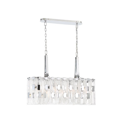 Eurofase 33743-011 Viviana Links Of Patterned Press Glass Linear Pendant Light, 9-Light 360 Total Watts, 29"H x 11"W x 48"L, Chrome