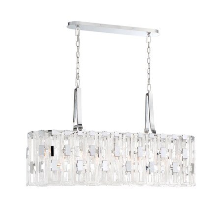 This 9 light Chandelier from the Viviana collection by EuroFase will enhance your home with a perfect mix of form and function. The features include a Chrome finish applied by experts. Product Features Include: Brand: Eurofase, Collection: Viviana, SKU: 33743-011, UPC: 773546284646, Category: Chandelier, Finish: Chrome, Glass: Clear, Shade: Clear, Material: Metal/Glass, Length: 48.00 in., Width: 11.00 in., Height: 28.75 in., Backplate/Canopy Width: 5.50 in., Backplate/Canopy Length: 27.50 in., Backplate/Canopy Thickness: 1.00 in., Weight: 68.20 lb., Included Chain/Rods/Cord: 144in of Chain, 27.5in of Stem, Warranty: 1 year warranty, Bulbs Included: No, Bulb Category: Incandescent, Primary Bulb(s): 9 x 40.00 watts E12 B10, Voltage: 120V, Safety Rating: CETLUS Dry