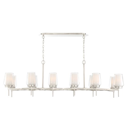 Eurofase 34096-024 Manchester Clear/Opal White Glass Island Chandelier, 12-Light 720 Total Watts, 18"H x 16"W x 59"L, Satin Nickel