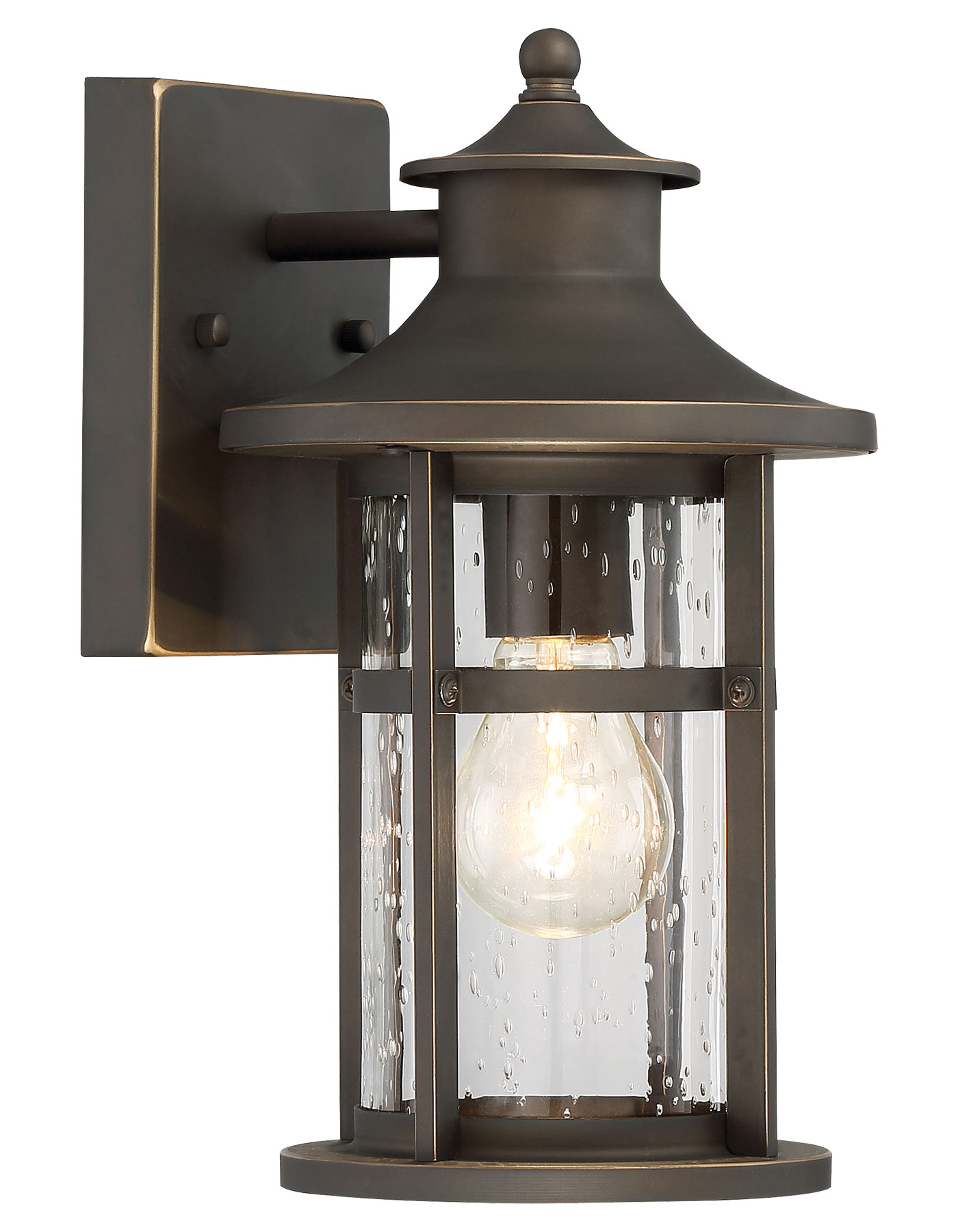 - MATERIAL: Aluminum with Oil Rubbed Bronze Finish and Clear Seeded Glass