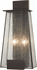 Impress guests upon entering with this interesting outdoor two-light wall light, great outside a front door. From Minka Lavery, the geometric trapezoidal shape is constructed of clear seeded glass shades and thin lines of metal. The textured glass contrasts against a deep Dakota bronze finish to produce a stunning and radiant visual.
