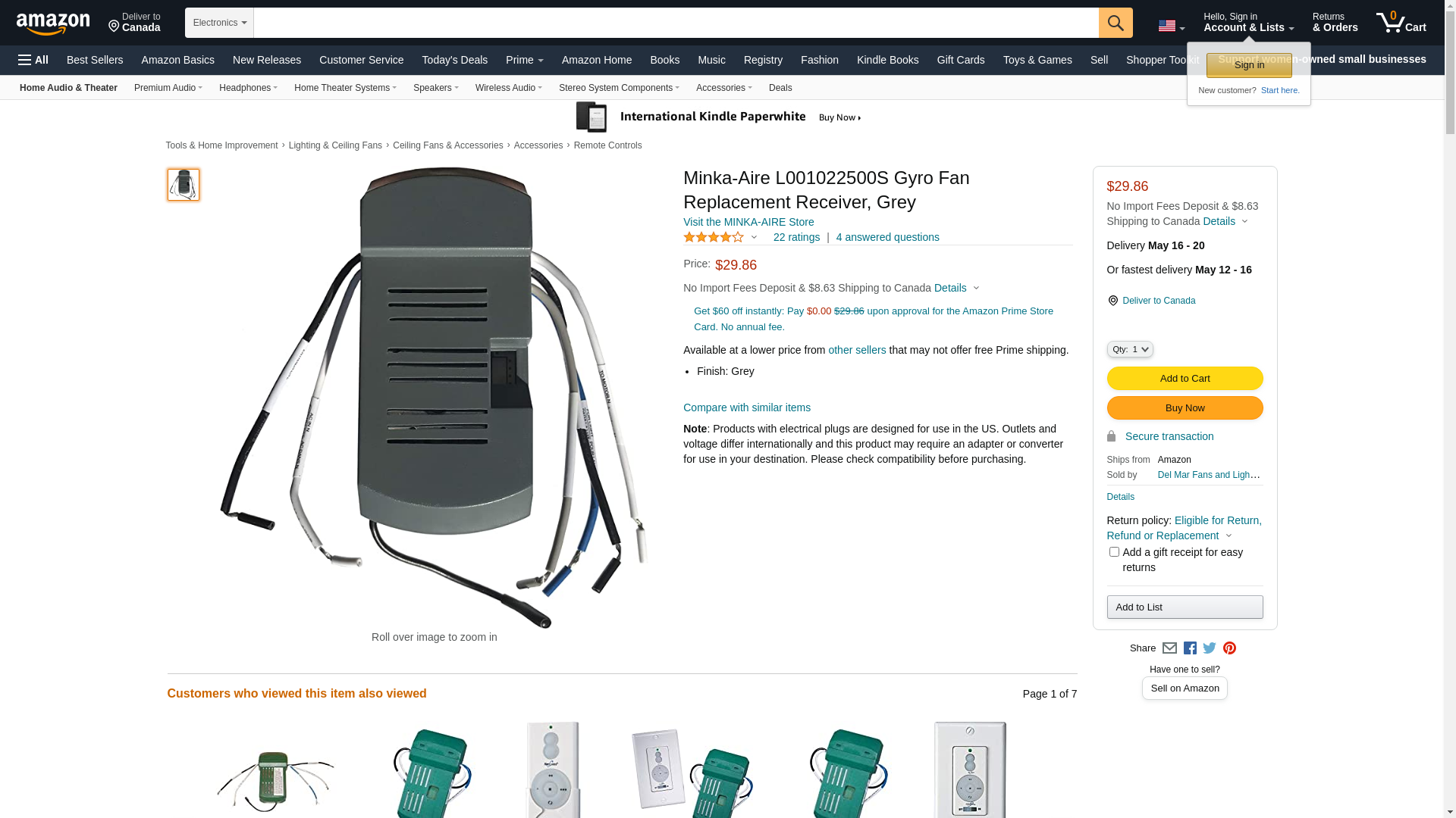 Minka-Aire L001022500S Gyro Fan Replacement Receiver, Grey