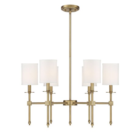 Savoy House 1-305-6-322 Chatham Updated Classical 6-Light Chandelier with White Fabric Shades in Warm Brass (28" W x 18" H)