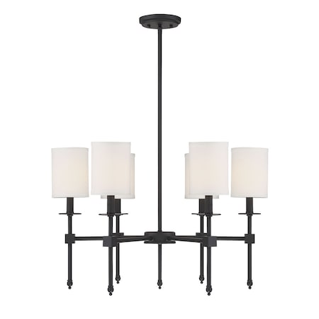Savoy House 1-305-6-89 Chatham Updated Classical 6-Light Chandelier with White Fabric Shades in Matte Black (28" W x 18"H)