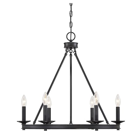 Get casual modern farmhouse flair with this Savoy House Middleton 6-light chandelier. It flaunts a stylish open hoop design and a bold classic bronze finish. Chandeliers can be used in a wide variety of spaces, including but certainly not limited to dining rooms, living rooms, great rooms, bedrooms, kitchens, foyers, offices, closets and even bathrooms! Because this chandelier is chain-hung, you can use as much or as little chain as you need to fit your specific hanging height needs, and it can be used on a sloped ceiling. Since the bulbs are exposed, try using stylized bulbs (not included) like tubular shape or Edison style for a different look! The classic bronze finish can be matched with bronze hardware or mixed with hardware in other finishes. The airy look of the Middleton is a great fit for farmhouse style, modern farmhouse style, transitional style and more. When you choose a Savoy House lighting fixture, you can be certain you've selected a piece that will withstand the test of time.