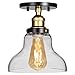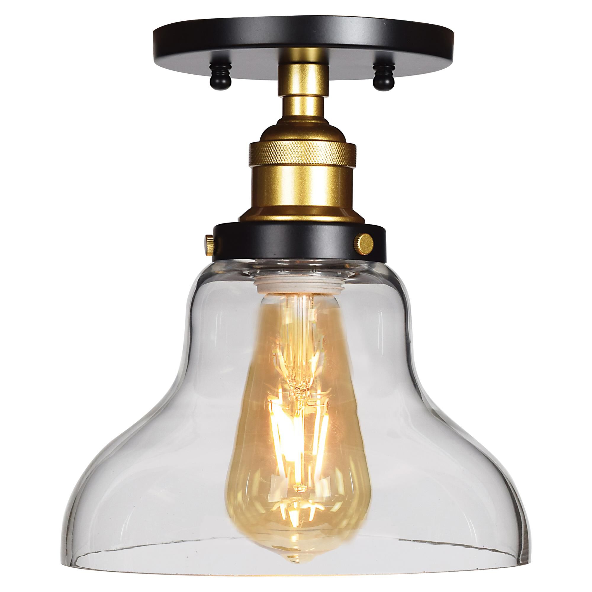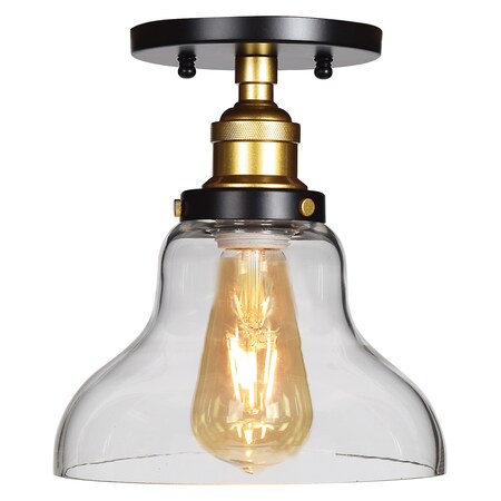 - This semi-flush is made of metal in a black and gold finish with a clear glass diffuser