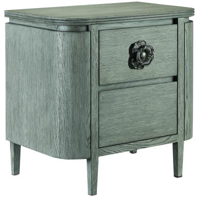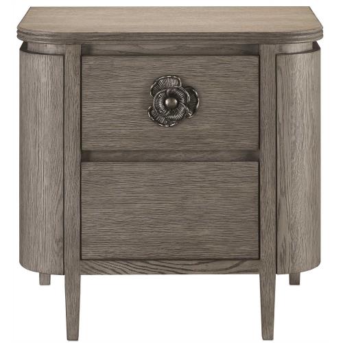 Currey & Company BRIALLEN Nightstand Winter Gray Antique Silver Solid Oak