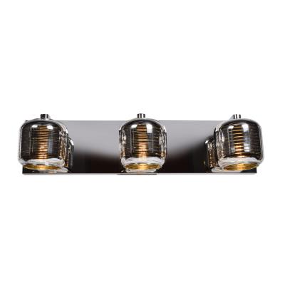 Dor 3-Light LED Vanity - Mirrored Stainless Steel Outer, Smoked Amber Glass Inner Diffuser