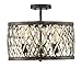 Rustic chic for high-style, casual living! The Sandoval combines industrial inspiration with modern farmhouse style, for an on-trend, rustic design aesthetic you’ll love in your home’s decor. The circular drum shade has thick, bold rims and a woven, open crisscross pattern all around. This frame has a warm, Fiesta bronze finish with roughened gold leaf accents —adding to the excellent visual and textural interest of the fixture. Within the shade, three 60W, E-style bulbs provide illumination through the open metal weave. This pendant measures 16” wide and 13” high. Plus it’s convertible: may be semi-flush mounted or hung as a pendant. Either way it’s perfect for your dining room, kitchen, living room, entryway, family room, office, or stairway.
