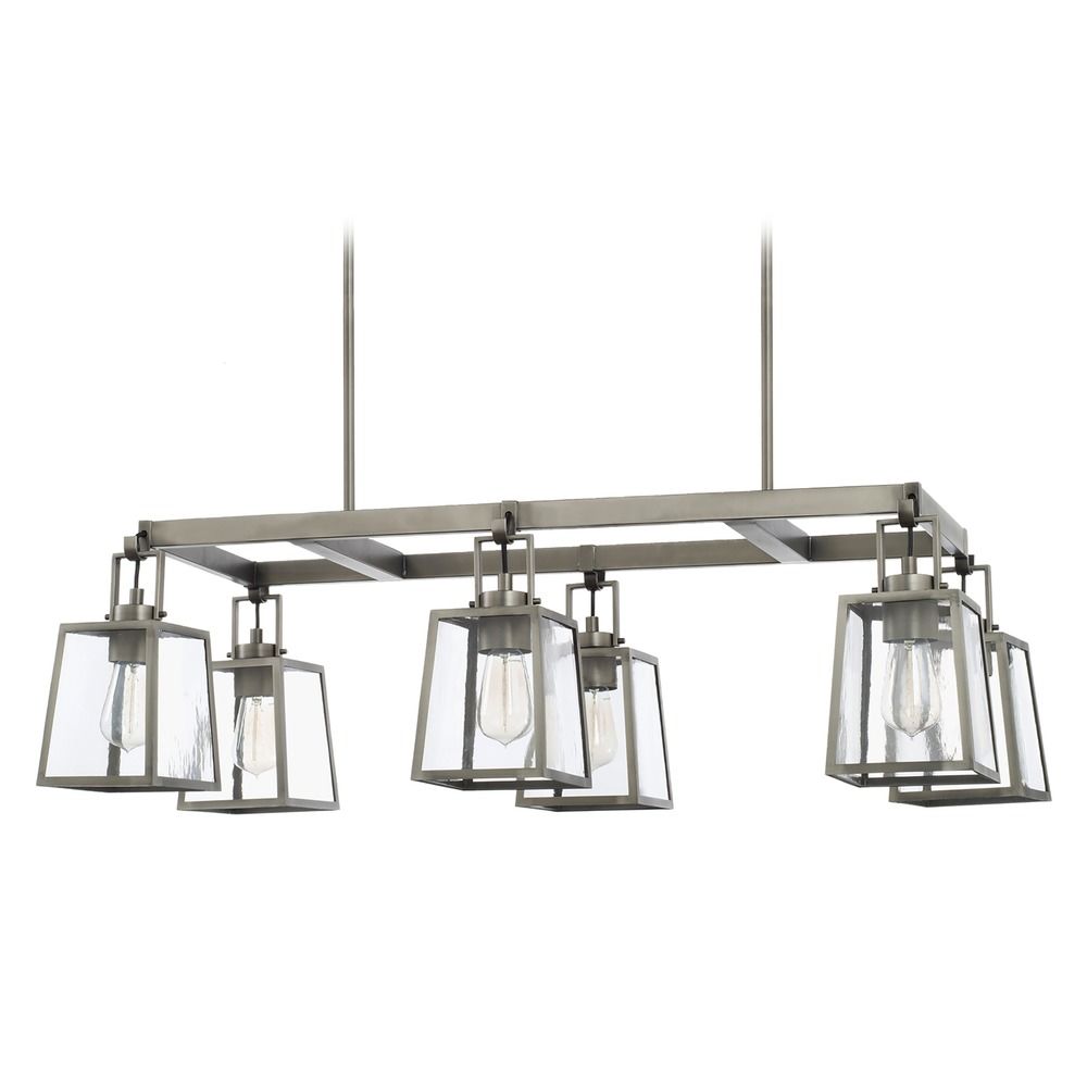 Capital Lighting 825561AN-447 Kenner Urban/Industrial Clear Rain Glass Linear/Rectangular Island, 6-Light 600 Total Watts, 12" H x 40" W, Antique Nickel