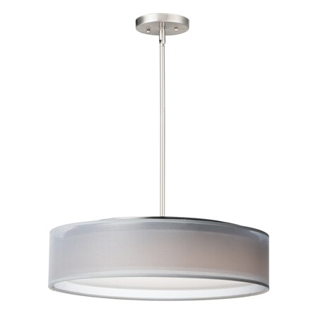 Maxim 10226WOSN Prime Acrylic & White Organza Double Shade Drum LED Pendant Ceiling Light, 5-Light 32.5 Total Watts, 7" H x 20" W, Satin Nickel