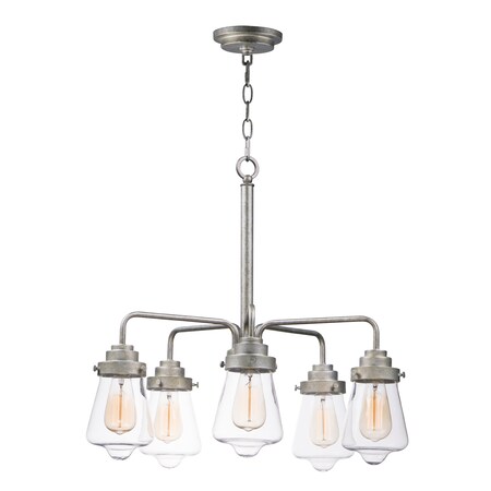 Maxim Lighting-11335CLWZ-Collection: Cape Cod, Material: Glass, Finish Color: Weathered Zinc, Width: 26", Height: 23.5", Length: 26.25", Chain Length: 36", Lamping Type: Incandescent, Number Of Bulbs: 5, Wattage: 60 Watts, Dimmable: Yes, Moisture Rating: Dry Rated, Desc: A rustic styled frame of Weathered Zinc finish supports Clear lantern shaped glass. This transitional look spans several style genres from nautical to vintage. Canopy Included: Yes / Canopy Diameter: 5.00 / Sloped Ceiling Adaptable: Yes / Chain Length: 36.00 / Dimable: Yes / Shade Included: Yes. ,-Cape Cod-5 Light Chandelier-26 Inches wide by 23.5 inches high -Traditional Installation
