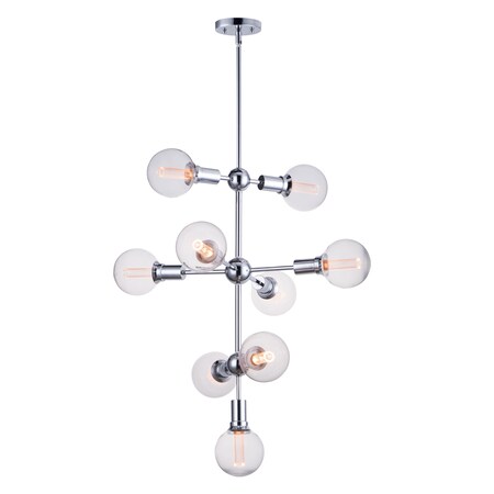 The Maxim Lighting Molecule 27" Wide 9-Light Chandelier using E26 Medium G40 LED Bulb with Clear Bulbs with Polished Chrome has fun contemporary look and feel.