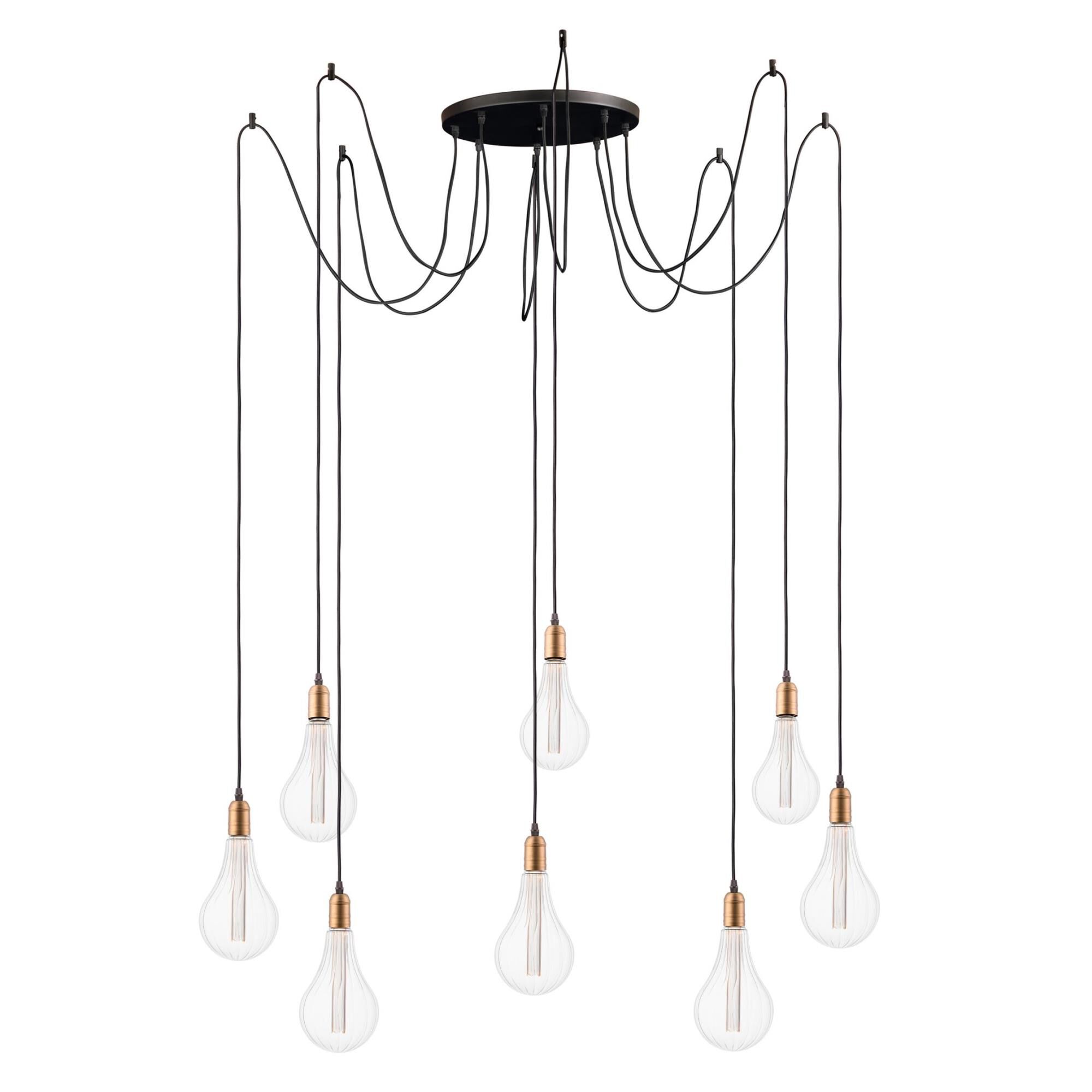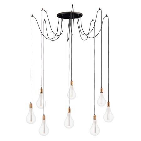 Maxim 12128BKAB/BUL-A52 Early Electric LED Pendant Ceiling Lighting with Fabric Cord, 8-Light 28 Total Watts, 3"H x 16"W, Black/Antique Brass