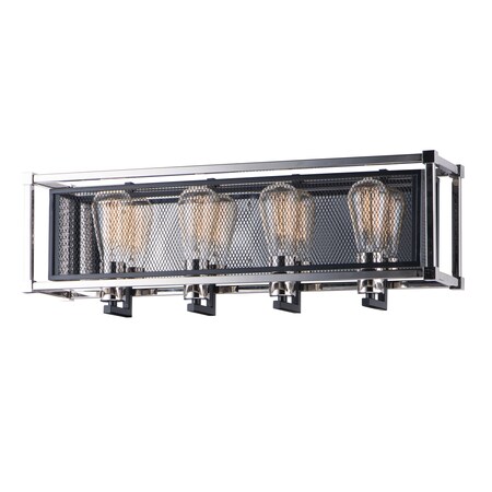 Maxim 12154BKPN Refine Industrial Metal Mesh Bath Vanity Wall Mount, 4-Light 240 Total Watts, 8"H x 26"W, Black/Polished Nickel