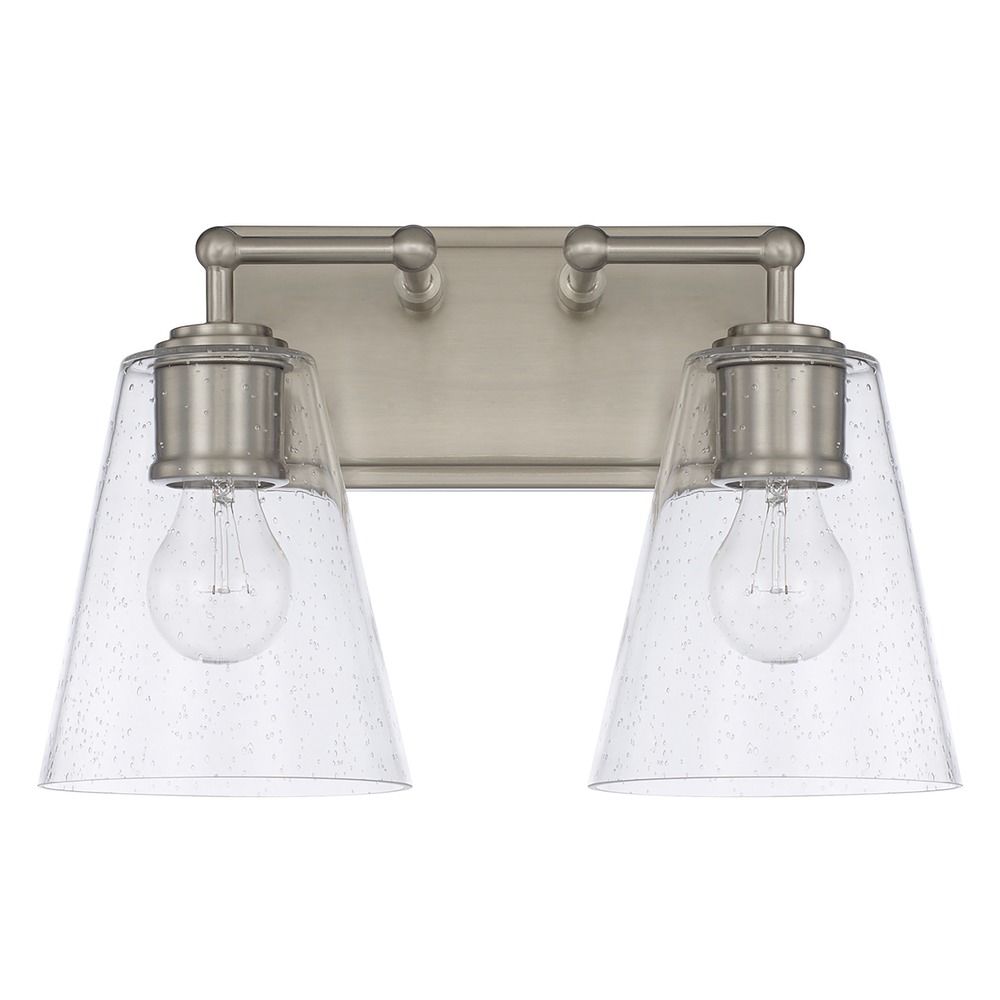 Capital Lighting 121721BN-463 Murphy Clear Seeded Glass Bath Vanity Wall Mount, 2-Light 200 Total Watts, 10" H x 15" W, Brushed Nickel
