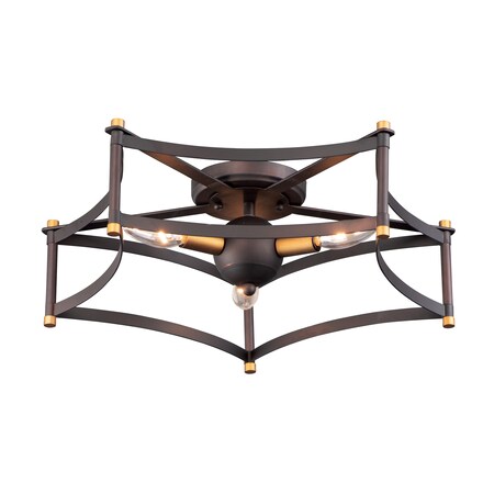 Maxim 13590OIAB Wellington Open Frame Candle Flush Mount, 3-Light 180 Total Watts, 5"H x 20"W, Oil Rubbed Bronze/Antique Brass