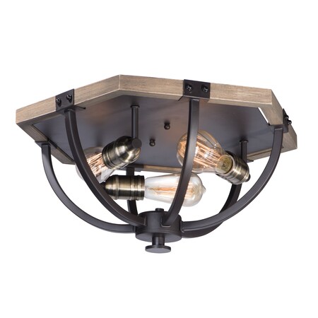 Maxim 20330WOBZ Lodge Rustic Flush Mount Ceiling Lighting, 3-Light 180 Total Watts, 9" H x 20" W, Weathered Oak/Bronze