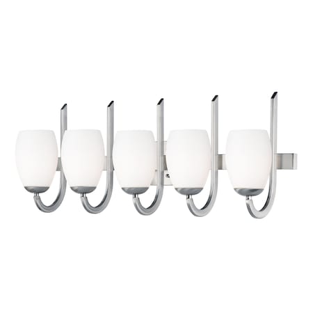 Maxim 21645SWSN Taylor Satin White Opal Glass Bath Vanity Wall Mount, 5-Light 300 Total Watts, 12" H x 32" W, Satin Nickel