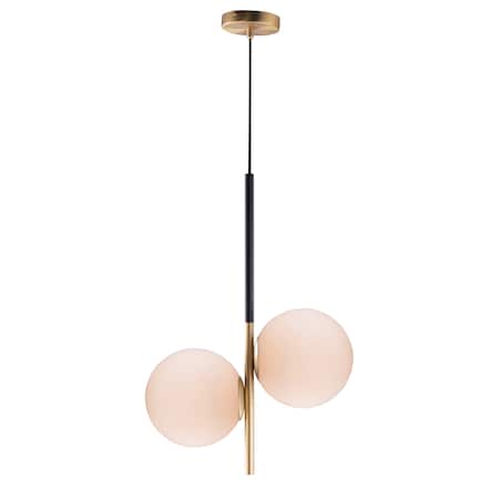 Maxim 26035SWSBRBK Vesper Mid Century Modern and Scandinavian Satin White Glass Orb Pendant Ceiling Light, 2-Light 120 Total Watts, 24" H x 10" W, Satin Brass/Black