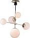 Maxim 26037SWSBRBK Vesper Mid Century Modern and Scandinavian Satin White Glass Orb Pendant Ceiling Light, 5-Light 300 Total Watts, 38" H x 15" W, Satin Brass/Black