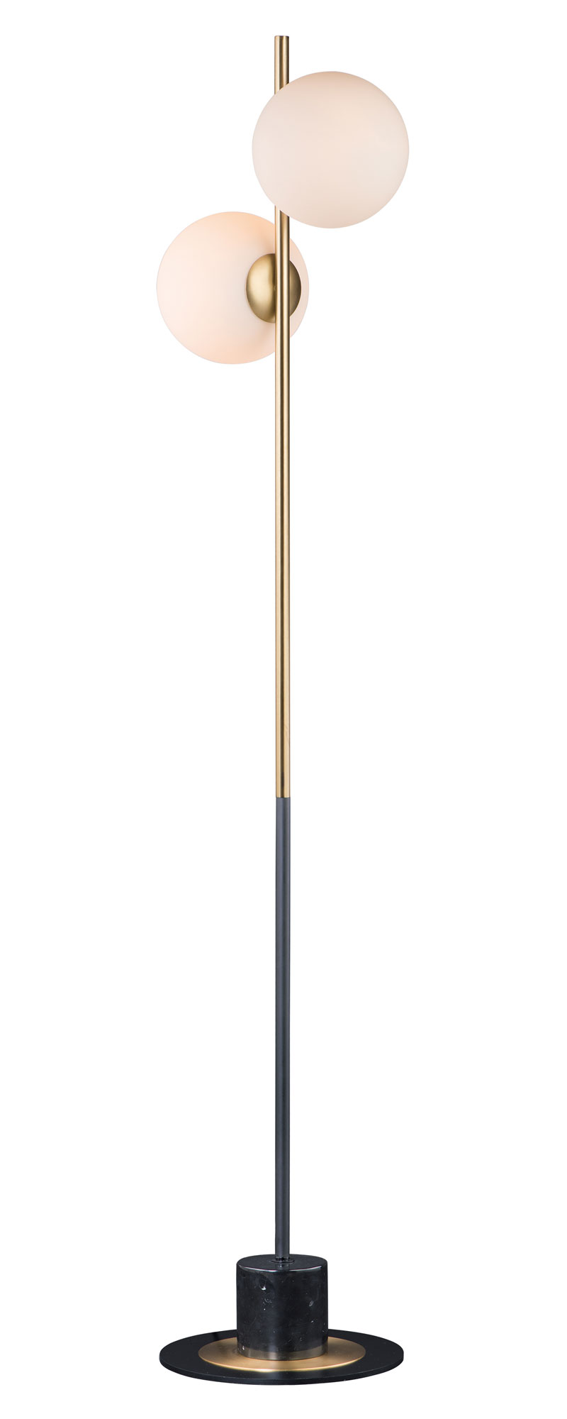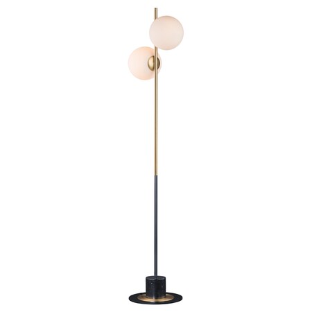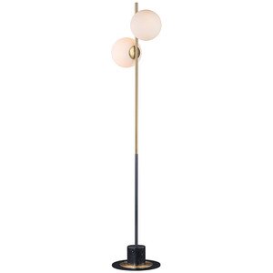 Maxim 26039SWSBRBK Vesper Mid Century Modern/Scandinavian Satin White Glass Orb Floor Lamp, 2-Light 120 Total Watts, 69"H x 8"W, Satin Brass/Black