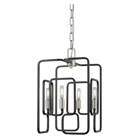Varaluz 317P04SOCB Rectangulo Pendant, 4-Light, Silverado/Black