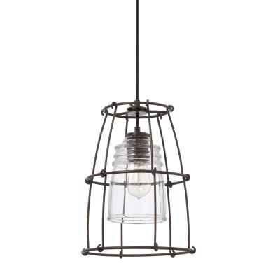 Capital Lighting 329711NG-462 Turner Framed Clear Ringed Glass Jelly Jar Pendant, 1-Light 100 Watts, 15"H x 11"W, Nordic Grey