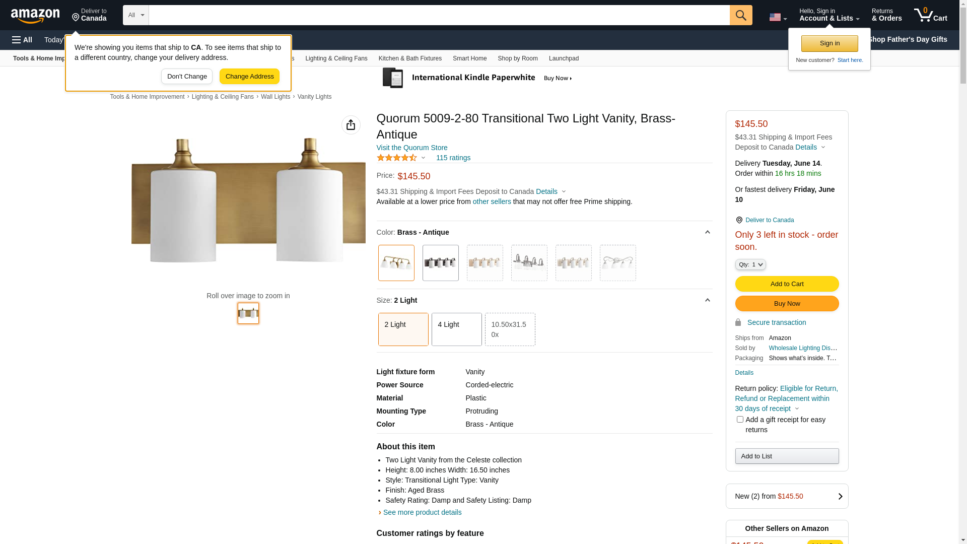 - Finish: Aged Brass