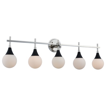 Kalco 508535BPN Bogart Vanity, 5-Light 200 Total Watts, Matte Black w/Polished Nickel