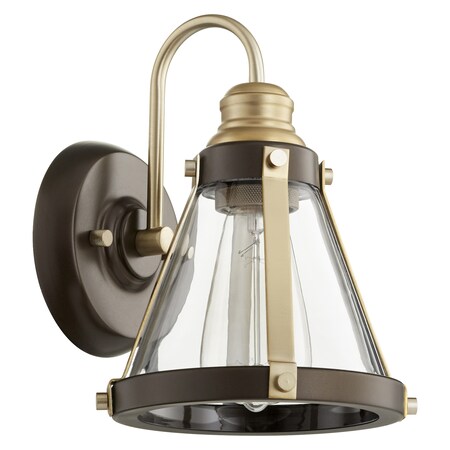 Quorum 587-1-8086 Wall Sconce, 1-Light, 100 Watts, Aged Brass w/ Oiled Bronze