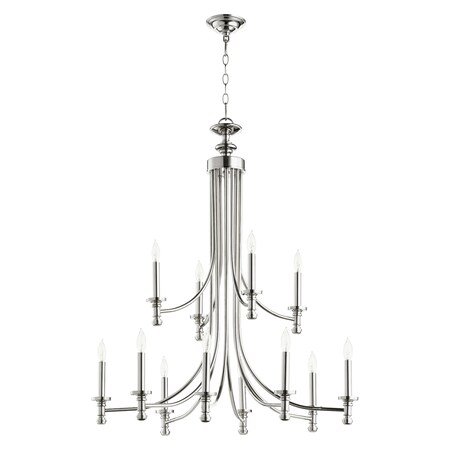 Quorum 6022-12-62 Transitional 12 Light Chandelier from Rossington Collection in Polished Nickel Finish,