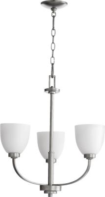Quorum 6060-3-64 Reyes - Three Light Chandelier, Classic Nickel Finish with Satin Opal Glass