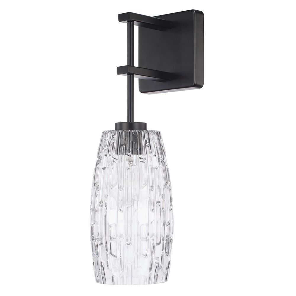 Capital Lighting 628611MB-450 Casper Clear Embossed Glass Wall Sconce, 1-Light 100 Watts, 17" H x 5" W, Matte Black