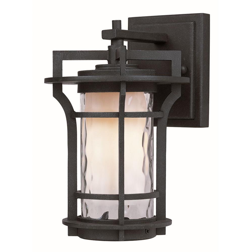 This 1 light Outdoor Wall Mount from the Oakville LED E26 collection by Maxim will enhance your home with a perfect mix of form and function. The features include a Black Oxide finish applied by experts. Product Features Include: Brand: Maxim, Collection: Oakville LED E26, SKU: 65782WGBO, UPC: 783209204881, Category: Outdoor Wall Light, Finish: Black Oxide, Glass: Water Glass, Material: Die Cast Aluminum, Length: 7.00 in., Width: 6.25 in., Height: 9.50 in., Extension/Depth: 7.00 in., Backplate/Canopy Width: 4.25 in., Backplate/Canopy Length: 5.00 in., Backplate/Canopy Thickness: 5.00 in., Height from Center of Wall Opening: 2.50 in., Weight: 3.96 lb., Bulbs Included: Yes, Bulb Category: LED, Primary Bulb(s): 1 x 9.00 watts E26 Medium A19, Color Temperature: 3000K, Color Rendering Index: 90.0000, Total Lumens: 800, Voltage: 120, Outdoor Rating: Suitable for Wet Locations, Safety Rating: cETLus Wet, Title 24 Approved