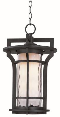Maxim 65788WGBO Oakville JA8 Compliant Clear Water/Satin White Glass Cylinder Outdoor LED Pendant Hanging Lantern, 1-Light 12 Watt, 19" H x 12" W, Black Oxide