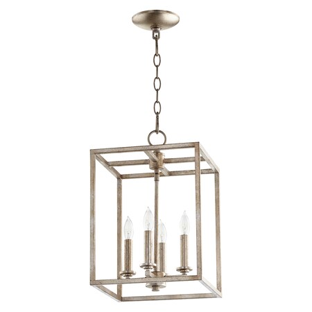 Quorum 6731-4-60 Transitional Four Light Entry Pendant in Pewter, Nickel, Silver Finish,