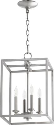 Quorum 6731-4-65 Transitional Four Light Entry Pendant in Pewter, Nickel, Silver Finish,
