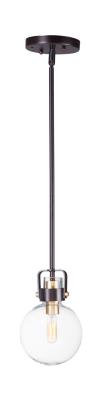 Maxim 90510CLBZSBR Bauhaus Mid Century Modern Clear Glass Orb Mini Pendant Ceiling Light, 1-Light 60 Watt, 11" H x 6" W, Bronze/Satin Brass