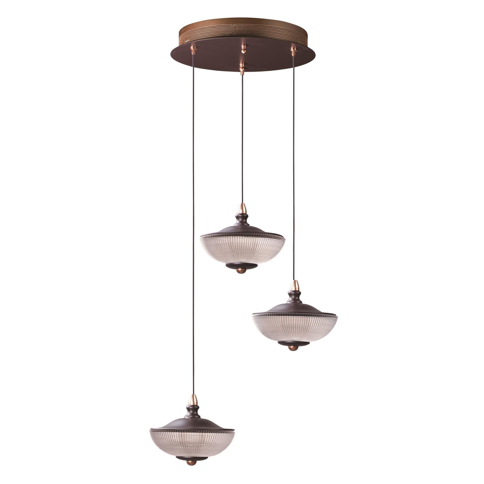 ET2 E23152-126BRZGLD Bella Flared Metal and Prismatic Glass Round LED Pendant Ceiling Lighting, 3-Light 12 Total Watts, 5"H x 15"W, Bronze / Gold